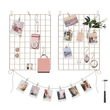 Show moreTransform your space into a stylish and organized haven with the SONGMICS Wall Grid for Photos. This innovative set of grid panels serves multiple purposes, whether you wish to create a stunning photo wall, a practical memo board, or a chic earring organizer. Crafted from sturdy metal with an enchanting rose gold finish, these panels are designed to blend functionality with aesthetic appeal. Each piece is expertly coated with odorless lacquer for durability and safety, ensuring your space not only looks beautiful but is also free from harmful smells.