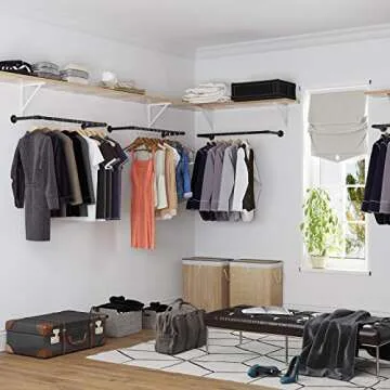 Show moreTransform your space with the SONGMICS Wall-Mounted Clothes Racks, a stylish and functional solution to your storage woes. This set of 2 industrial pipe clothes hanging bars is designed to maximize your vertical space, turning empty wall areas into functional storage that fits seamlessly into any decor style. With ample dimensions of 11.8 x 36.2 x 2.9 inches, these racks provide a chic way to display your wardrobe while keeping it organized and easily accessible. The rugged black finish and industrial design add a modern touch to any room, making them not just a storage option, but a fashionable statement in your home or retail space.