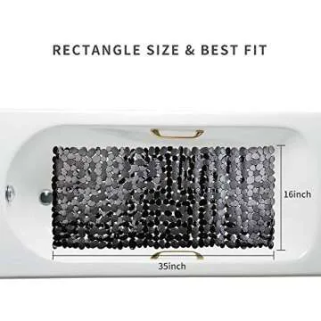 SONGZIMING Non-Slip Pebble Bath Mat - Black 16W x 35L Inches for Smooth Tub