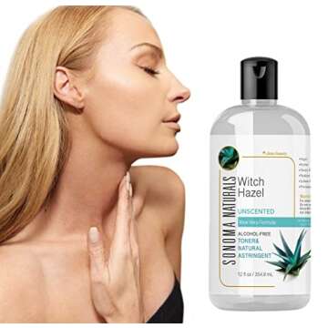 Show more Discover the refreshing power of Sonoma Naturals Alcohol-Free Unscented Witch Hazel Hydrating Facial Toner, expertly formulated to hydrate and clarify your skin without the harsh effects of alcohol. This toner not only gently aids in removing impurities but also utilizes the soothing effects of Aloe Vera, making it perfect for daily use. With a generous 12 fl oz (354.9ml) bottle, you can indulge in a spa-like experience at home while attaining a radiant complexion! Whether you're dealing with oily skin, breakouts, or simply wish to refresh your face, this unscented toner is designed to rejuvenate at any time of the day.