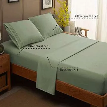 SONORO KATE Bed Sheet Set Super Soft Microfiber 1800 Thread Count Luxury Egyptian Sheets 16-Inch Deep Pocket,Wrinkle and Hypoallergenic-4 Piece (Sage, King)