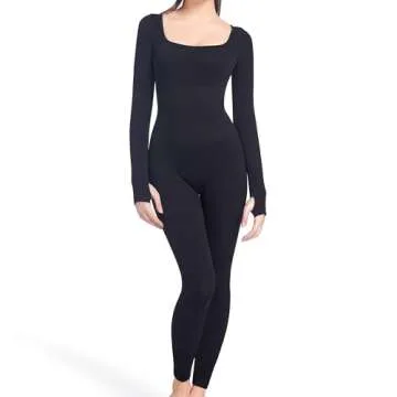 Soo slick Jumpsuits for Women Tummy Control Long Sleeve Sculpting Full Bodysuit | Square Neck Ribbed One Piece Dupes