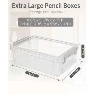 Show moreDiscover the ultimate solution for organization with the Sooez 6 Pack Extra Large Pencil Box. Designed with convenience and functionality in mind, this set of six clear plastic containers is perfect for storing art supplies, crafting materials, or school essentials. Measuring 8.6 inches in length, 5.5 inches in width, and 2.7 inches in height, each box is spacious enough to hold over 180 pencils, 100 markers, or 200 crayons. The clear design allows you to quickly identify contents, making it an indispensable tool for artists, teachers, and parents alike.