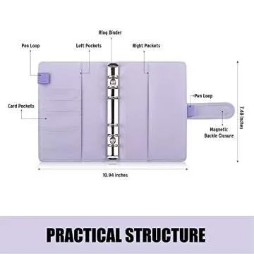 This binder is carefully structured with a magnetic buckle closure that ensures your notes stay securely tucked away. It also features four card slots and two pockets for your passport, tickets, or important notes, leaving no item unaccounted for. The sturdy stainless steel rings with a diameter of 0.79 inches hold your papers firmly, preventing them from falling out while being easy to use.