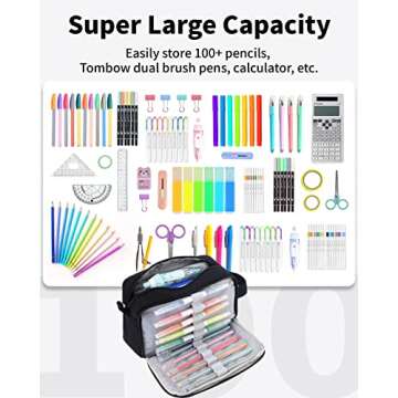 Sooez Big Capacity Pencil Case, Upgraded Canvas Pencil Pouch Large Pencil Bag Organizer, Separate Compartments Easy Grip Handle, Aesthetic Supply for School Teens Adults, Black Pen Case
