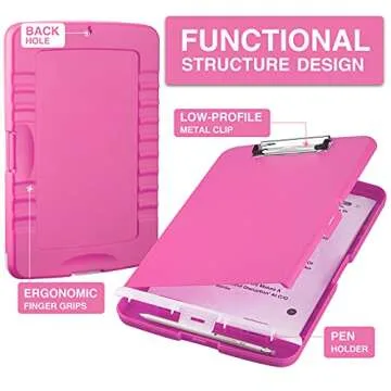 Show moreIntroducing the **Sooez Clipboard with Storage**, a must-have for teachers, nurses, and professionals who require an efficient and organized workspace. This innovative clipboard combines style and functionality, ensuring that you never have to compromise on quality or convenience. Crafted from high-quality, water-proof polypropylene, this clipboard features a smooth surface ideal for writing or drawing while standing. With its robust design, ergonomic low-profile clip, and multiple storage capabilities, this clipboard stands out from the rest.