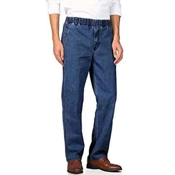 Soojun Mens Casual Loose Fit Elastic Waist Denim Pants, Indigo, 38W x 30L