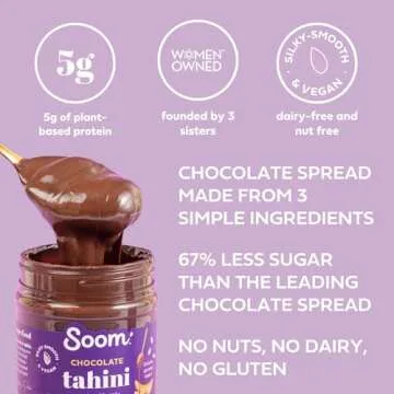 Soom Foods Chocolate Sesame Spread - 12oz (2 Pack) | Made with 3 Ingredients, Low Sugar, Dairy-Free, Nut-Free, Gluten-Free, Palm Oil-Free | 5g Protein | Better for You Chocolate Spread
