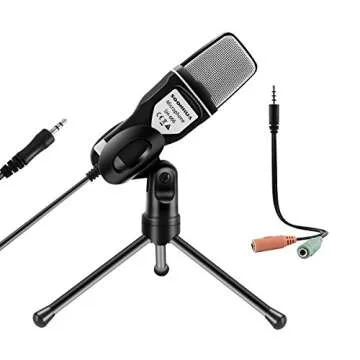 SOONHUA Condenser Microphone,Computer Microphone, 3.5MM Plug and Play Omnidirectional Mic with Desktop Stand for Gaming,YouTube Video,Recording Podcast,Studio,for PC,Laptop,Tablet,Phone
