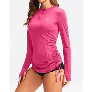Soothfeel Women's Long Sleeve UV Sun Protection Rash Guard Shirts UPF 50+ Swim Shirt Swimsuits Top for Women with Zip Pockets Light Rose
