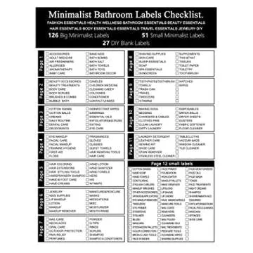 Sootozy 204 Minimalist Bathroom Labels for Organizing, Preprinted Black Script Waterproof Labels, Bathroom Organization Labels for Storage Bins Containers and Jars