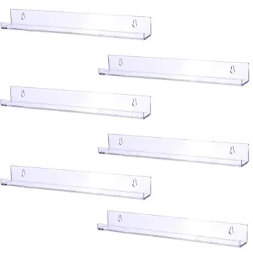 Show more Introducing the Sooyee 6 Pack 15 Inch Acrylic Invisible Kids Floating Bookshelf, where elegance meets utility! These modern shelves are perfect for any kid's room or home decor, offering a stylish way to display books, collectibles, or toys without compromising on space. Each shelf, measuring 15 inches in length and boasting a sleek, clear design, makes your displayed items pop while keeping your walls looking clean and organized. With a focus on functionality, this set is designed to inspire creativity in your child’s environment—think a cozy reading corner or an elegant display for their favorite figurines.