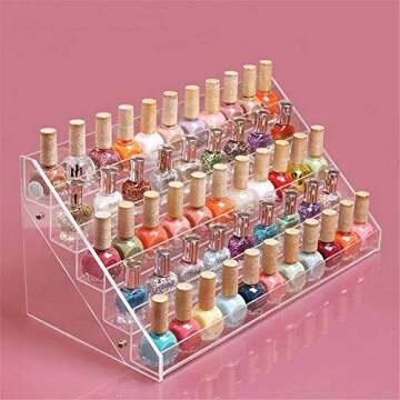 Sooyee 72 Bottles Acrylic 5 Layer Nail Polish Rack Tabletop Display Stand,Clear 5 Tier Lipstick Holder Essential Oils Shelf 15.7x7.8x7.5 Inch,Pack of 1