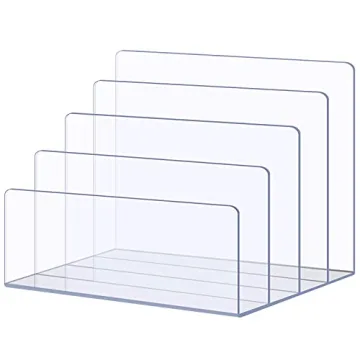 Show moreIntroducing the Sooyee File Organizer, the ultimate organization solution for your workspace! Crafted from premium cast acrylic, this stunning file holder measures a compact 9(L) x 7(W) x 7(H) inches and features a sophisticated rounded edge design that not only enhances the aesthetic appeal of your desk but also provides safety during use. Boasting 4 spacious slots, each capable of accommodating items up to 1.57 inches (40 mm) wide, it’s perfect for filing away letters, documents, and notebooks while keeping your workspace perfectly organized and clutter-free.
