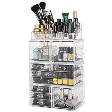 Sooyee Makeup Organizer,Make Up Organizer Stands,Acrylic Makeup Storage 10 Makeup Drawer Organizer for Bathroom, Dresser, Vanity Accessories or Countertop,Clear,4 Pieces Stackable