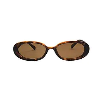 Sopaila Mini Vintage Retro Extra Narrow Oval Round Skinny Cat Eye Sun Glasses Clout Goggles,leopard