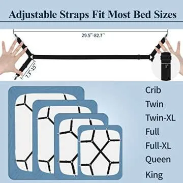 Sopito Sheet Straps, Adjustable Bed Sheet Suspenders Max Stretch from 29.5 in to 82.7 in Compatible for Crib to King Size Bed, Non Slip Holder Fasteners Clips, 2pcs/Black