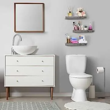 Show more Transform your living space into a well-organized and stylish haven with the Sorbus Floating Shelves for Wall. This elegant set of two wall-mounted shelves provides an ideal solution for maximizing storage while enhancing the aesthetic appeal of any room. Specifically designed to offer both functionality and modern charm, these shelves measure approximately 16.25 inches in length and 5.50 inches in width, making them the perfect addition to any decor style—from contemporary to rustic. The durable MDF construction, finished in a serene grey, paired with a sleek PVC + Bracket system, ensures a sturdy platform for your treasured items, supporting up to 22 pounds per shelf. Whether you’re displaying family photos, trophies, or decorative accents, these shelves bring practicality and style without taking up valuable floor space.