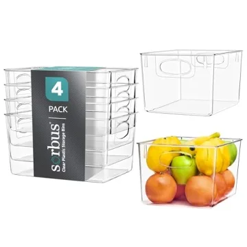 Show more Transform your home into an oasis of order and efficiency with the Sorbus Large Clear Plastic Storage Bins. Designed for versatility and durability, these organizer bins are your ultimate solution for decluttering every corner of your household. The clear plastic construction not only enhances visibility, allowing you to see contents at a glance, but also seamlessly fits into any decor—ideal for shelves, closets, or kitchen pantries. Perfectly sized, these bins promise to keep your items securely in place while making them easily accessible.