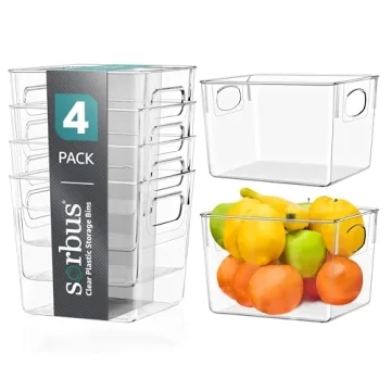 Show moreIntroducing the **Sorbus Medium Clear Plastic Storage Bins** – the perfect blend of functionality and style for your home organization needs! Designed with versatility in mind, these storage bins are not just for the kitchen; they are ideal for organizing clothes, pantry staples, kitchen tools, and more. With a sleek and transparent construction, you can easily identify the contents without the hassle of opening or labeling, making your life simpler. Each bin features convenient built-in handles for a secure grip, allowing you to effortlessly pull them out from shelves or cabinets. Crafted from high-quality, **BPA-free plastic**, these durable bins are perfect for safe food storage, ensuring that they stand the test of time while enhancing your overall organization strategy.