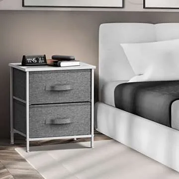 Sorbus Nightstand with 2 Drawers - Bedside Furniture End Table Night Stand with Steel Frame, Wood Top & Easy Pull Fabric Bins - Small Dresser & Chest for Home, Bedroom Accessories & Office