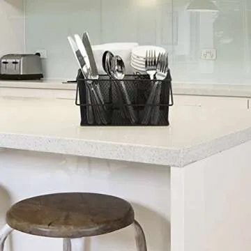 Show moreIntroducing the Sorbus® Utensil Caddy, your ultimate partner for seamless serving and organization! Crafted from durable steel mesh with a sleek black finish, this caddy combines functionality with style, making it a perfect accessory for any gathering, no matter the occasion. With an intelligent design that includes one large compartment and three smaller sections, it efficiently holds silverware, napkins, and condiments, ensuring everything is readily accessible. Whether you're hosting a dinner party, tailgating with friends, or enjoying a picnic in the park, this caddy is your go-to solution for a tidy setup.