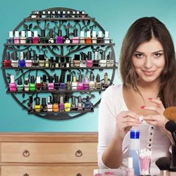 Sorbus Wall Mounted 5 Tier Nail Polish Rack Holder - Tree Silhouette Round Metal Salon Wall Art Display (Black)