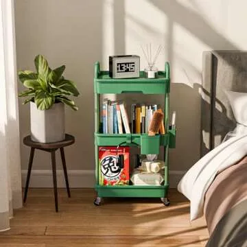 Sorgion 3 Tier Rolling Cart Organizer,Laundry Room Bathroom Organizers and Storage Office Shelves Mobile Shelving Unit Kitchen Trolley Cart with Wheels for Art,Craft,Diaper,Bedside,Snack(Green)