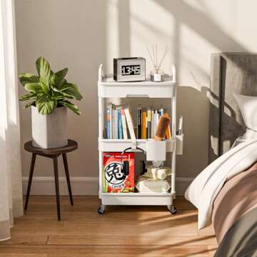 Sorgion 3 Tier Rolling Cart Organizer,Laundry Room Bathroom Organizers and Storage Office Shelves Mobile Shelving Unit Kitchen Trolley Cart with Wheels for Art,Craft,Diaper,Bedside,Snack(White)