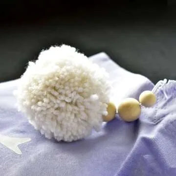 The bag features charming yarn pom poms adorned with elegant wooden beads, enhancing its overall appeal and making it a fun accessory for any outing. Whether you're heading to class, the beach, or a sorority event, this tote adds a splash of color and a touch of nostalgia to your ensemble, showcasing your pride in your sorority in an eye-catching way.