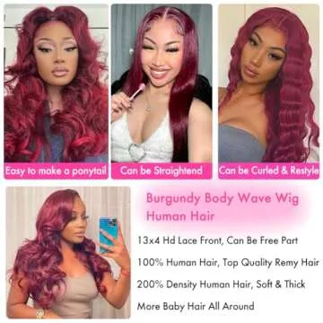 SOSATISFY Body Wave 99J Burgundy Lace Front Wigs Human Hair 200% Density 13x4 Glueless HD Transparent Wine Red Wigs for Women Human Hair Pre Plucked with Baby Hair (28 inch)