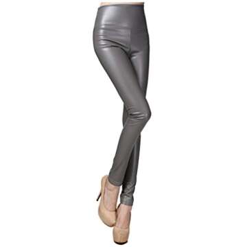 Sosite Women Thick High Waist Faux Leather Leggings Skinny Pencil Party Pants (XXL, Light Gray)