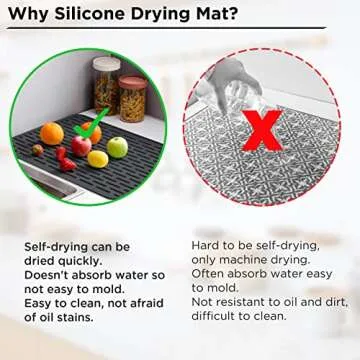 SOSMAR Silicone Drying Mat, XL Size 23” x 18”, Dish Drying Mat, Large Dish Drainer Mat for Kitchen Counter, Heat Resistant Hot Pot Holder, Non-Slip Silicone Sink Mat, BPA Free, Dish Washer Safe, Black