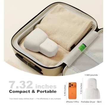 Show moreIntroducing the Sothing Portable Clothes Dryer, your ultimate companion for effortless laundry solutions while on-the-go! Weighing in at a mere 1.38 lbs and measuring just 7.32 inches in length, this compact and lightweight dryer is designed for maximum portability, allowing you to easily tuck it into your suitcase, backpack, or even a small cabinet. Perfectly engineered for those living in apartments, dorms, or anyone who loves to travel, this dryer transforms your laundry experience without taking up precious space.