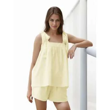 Sotimoon Womens Summer Cami Pajama Sets 2 Piece Sleeveless Top and Shorts Soft Lounge Set Yellow