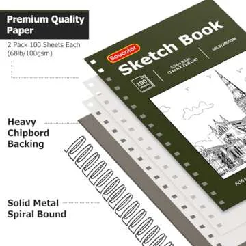 Show more Discover the ultimate canvas for your creativity with our premium sketchbook, a must-have for artists of all levels. This professional sketch book features a compact size of 5.5 x 8.5 inches, making it perfect for on-the-go sketching and doodling. With 100 sheets in each sketchpad (200 pages total), you'll have ample space to explore your artistic talents without worrying about running out of paper. The exquisite texture of the premium art paper provides a rich foundation for sketching, drawing, illustrating, and painting.