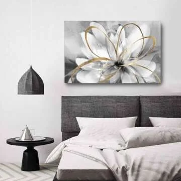 SOUGUAN White Floral Wall Decor Grey Background Modern Painting Wall Art 24"x36" Neutral Artwork Paintings for Bedroom Kitchen Pictures