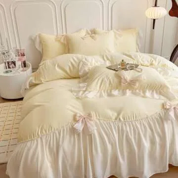 retreat with the SOUKECHY Ruffled Bedding Bow Duvet Cover Set. This