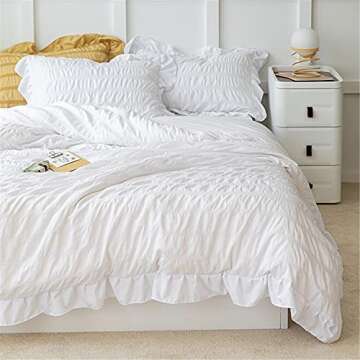SOUKECHY White Ruffled Bedding-2 Pieces Twin Seersucker Duvet Cover Textured Stripe Style, Soft Lightweight, Washed Microfiber, Zipper Closure and Ties