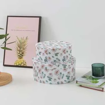 Soul & Lane Oblong Decorative Cardboard Storage Boxes with Lids, Set of 2 Floral Keepsake Boxes for Women, Oval Nesting Storage for Gifts, Home Decor, Organizing, Garden Roses