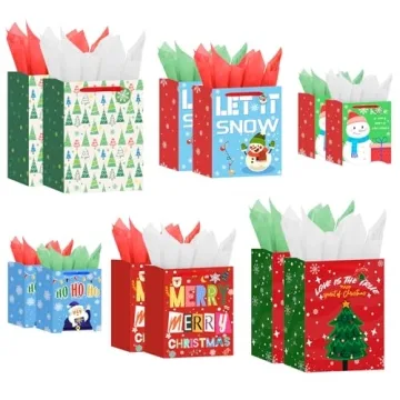 Crafted with premium quality in mind, these bags are not only visually appealing but also incredibly sturdy. Each bag features robust carrying handles designed to support the weight of your carefully chosen gifts, so you can trust that your presents will be safely transported. Coupled with 24 sheets of vibrant tissue paper, the bags provide an added layer of decoration that complements their festive designs, bringing joy and surprise to every recipient. Why settle for flimsy bags when you can elevate your presentation with ones that promise reliability and style?