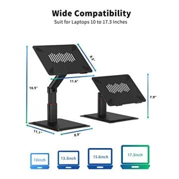The SOUNDANCE Laptop Stand is compatible with all laptops ranging from 10 to 17.3 inches, including popular brands like Mac, Dell, ASUS, Lenovo, and more.