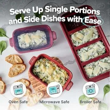 Souper Cubes Stoneware - Small Ceramic 5" x 3" Baking Dish with Silicone Covers, Small Baking Dishes for Oven Perfect for Reheating Single Serve Portions, Set of 4 - Cranberry