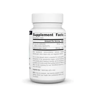 Each tablet of OptiZinc is crafted without yeast, dairy, eggs, gluten, corn, soy, or wheat, making it suitable for a wide range of dietary needs. It contains no artificial preservatives, colorings, or flavorings, allowing you to focus on what matters most: your health. Simply take one tablet daily with a meal, and immerse yourself in the array of benefits it offers.