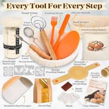 Show more Introduce yourself to the art of baking with our complete Sourdough Bread Kit, specially designed for both beginners and seasoned bakers alike. With this comprehensive kit, you’ll receive everything you need to embark on your sourdough journey, including a Round Proofing Basket (9 Inch) and an Oval Proofing Basket (10 Inch) for perfectly shaped loaves. The brand VEDALIO believes that making bread should be an enjoyable and satisfying experience. That’s why we’ve included not just tools, but also tips to ensure your baking sessions are as smooth as possible!