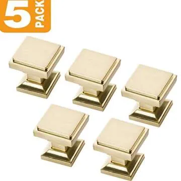 Show moreTransform your kitchen and bathroom spaces with the Southern Hills Satin Brass Cabinet Knobs. This exquisite pack of 5 cabinet knobs boasts a stunning brushed satin brass finish that elevates your decor with a touch of elegance and sophistication. Designed for functionality and aesthetic appeal, each knob measures 1 1/8" square and comes complete with a matching backplate for a seamless look. Whether you're renovating your space or just refreshing your existing cabinetry, these knobs are sure to provide an instant face-lift, creating a luxurious feel in any room of your home.