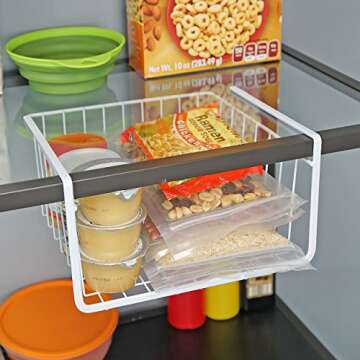 Show moreDiscover unparalleled convenience with the Southern Homewares White Wire Under Shelf Storage Organization Basket! This innovative storage solution is designed to help you effortlessly organize your food wrappers, bags, and more in one designated space. The basket is perfect for maximizing your cabinet and pantry options, allowing you to create a clutter-free environment. Crafted from durable white coated metal, its sleek look complements any room decor while providing functionality and style.