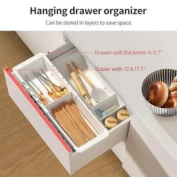 Souyoyu Plastic Drawers Organizer for Office Bathroom Bedroom Kitchen Desk - 1 Layers More White Storage Tray - Expandable 11.4-18.1 Inches