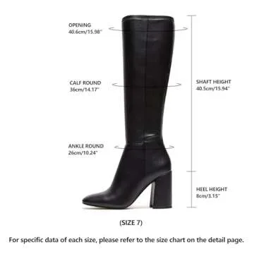 Show more Introducing the chic and stylish knee-high black boots from SOVANYOU, designed to elevate your wardrobe while ensuring ultimate comfort. Boasting a heel height of 8.5cm/3.34 inches and a shaft height of 37.5cm/14.76 inches, these boots are crafted from premium faux leather and lined with soft microfiber fabric for enhanced coziness.