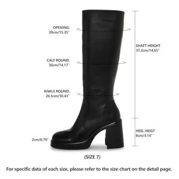 SOVANYOU Black Leather Boots Platform Boots for Women Square Toe Chunky Block Heeled Boots